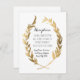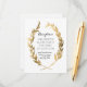 NOTA: NO EXISTE NINGUNA LÁMINA DE ORO REAL O DE ORO METÁLICO USADA EN ESTE DISEÑO. Se ha creado con una fotografía de alta calidad de un papel dorado real sobre una imagen pintada a mano. ESTE TAMAÑO NO SE ADAPTA A INVITACIONES CUADRADAS O REDONDAS - cambie a 3 1/2" x 5" para usarlas. Invitaciones de recepción coincidentes para eventos formales en un lugar separado, para listas de invitados u otros usos. Sin tiempo. Sencillo. Moderno. Agradable para un boda en un exuberante jardín al aire libre en primavera o verano con vegetación y vegetación como telón de fondo y tema de recepción. Dibujado a mano y pintado en acuarela con un agradable cambio sutil en los colores y el tono de las hojas. Se entrelazaron como sus corazones - y sus familias. Útil para un boda con elegancia minimalista, contemporánea y romántica. Para que coincidan, hay disponible una colección y un conjunto completo de invitaciones a la boda.