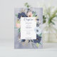 El diseño de esta tarjeta de la recepción de bodas incluye una corona de bronceado, marina, melocotón, bronceado y flores blancas sobre un fondo salpicado de color azul marino. También cuenta con elementos náuticos como cuerda, pez estrella y ancla. Ideal para el destino, la playa o el boda acuático. Creado por Simply Farmhouse Press, forma parte de la suite Boda Náutica floral de Rustic.
