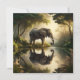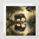Tarjeta elefante. Un bonito sereno ilustracion ai de un elefante parado en el bosque reflejando en el agua. Una tranquila pieza de arte para relajarse.