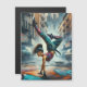 El diseño muestra una escena animada en la que una bailarina de rotura actúa en pleno movimiento en la calle. El personaje principal, el bailarín de rupturas, está en medio de un poderoso atril.