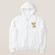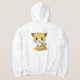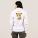 En la sudadera con capucha de esta mujer usted ve un dibujo animado de un leopardo joven con los ojos verdes grandes.