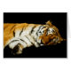 Fotografía de un tigre durmiendo de Amur sobre un fondo negro. También conocido como Tigre Siberiano, el Amur está muy cerca de extinguirse en la naturaleza. Solo quedan unos cientos. El tigre de Amur se extinguió en Corea del Sur en 1922, desde entonces ha habido esfuerzos de conservación para salvar esta especie. Nuestros esfuerzos para salvar esta especie parecen estar fallando, con la población de tigres que sigue cayendo debido a la caza y la pérdida de hábitat.