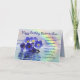 Las nomeolvides azules hermosas echaron a la deriva en un lago con un arco iris detrás. Un verso hermoso termina esta tarjeta única perfectamente.