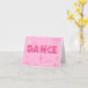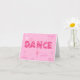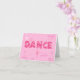 Esta tarjeta de nota hermosa ofrece la palabra "danza" en letras estrelladas intrépidas con "se imagina" "sueño" y "para alcanzar" en fuente cursiva bonita. Las pequeñas estrellas brillantes chispean contra el fondo rosado y una silueta de una bailarina termina la imagen. ¡Un regalo hermoso para cualquier persona que ama danza!