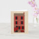 Este hogar histórico de la arenisca de color oscuro del estilo de las características de la tarjeta de nota de la arenisca de color oscuro con los obturadores rojos. Esconda el interior para su propia nota personal.