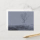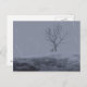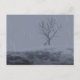 Un paisaje frío y ventoso en 3D en invierno, creado en Vue. Encima de una colina blanca con hielo y nieve, contra un cielo gris tormentoso con lluvia o manto cayendo sostenidamente, un solitario y desnudo árbol de arce se para con un banco de madera debajo.