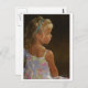 Dramático retrato de un niño sentado en un vestido de flores, resaltado por un rayo de luz solar. Foto original pintada digitalmente. Textura de tela incrustada.