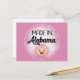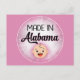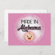 Esta graciosa postal muestra una cara de bebé blanca que dice "Hecho en Alabama" en un fondo rosado. Perfecto para invitaciones de recién nacido o sólo para diversión.