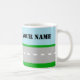 Los colores primarios adorables y frescos son el elemento clave en este taza linda estupenda de la taza del tema de la construcción del dumptruck de los niños o de los muchachos, con su nombre personalizado. Ofrece un camión volquete del trabajo con un cuerpo rojo, tiradas amarillas de la cama de la descarga y de la rueda, y un extractor y parachoques grises. El fondo contiene una carretera de asfalto gris con las marcas blancas, el verde para la hierba y el azul para un cielo. Un gran tema para los comercios de la fiesta de cumpleaños de los muchachos, del constructor y de edificio o una decoración grande del sitio del tema de la máquina de los niños. Todo diseña el © de Copyright www.CustomInvitesOnline.com 2012