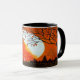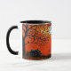 Taza del arte del otoño. Esta silueta del naranja y del negro puede tomarle a partir de Halloween con acción de gracias. Una escena preciosa que muestra a una familia con los niños que juegan en las hojas como padres/abuelos los rastrilla y quema. Amo ese olor. Estas tazas serían perfectas con un poco de sidra caliente en ellos por apenas tal tarde. El arte tituló la "quema se va" por Christine Altmann
