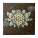 Las capas de la armadura y del indio célticos Mehndi del diseño de la armadura de Lotus se han enmascarado bajo forma del flor del loto en sombras del trullo y del marrón. Esta teja se puede enmarcar para crear un trivet o colocar dentro de una caja de regalo de madera. Las tejas sin un marco también cabrán dentro de la caja de regalo para crear un sistema que hace juego.