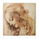 La teja principal de la mujer de da Vinci. Bosquejo de la tinta en el papel a partir de 1473. Uno de los stetches admirados de Leonardo da Vinci, cabeza de una mujer ofrece a una señora joven hermosa que baja su cara al espectador con ella mitad de los ojos abierta en la reflexión, su pelo que fluye largo cuelga abajo sobre su cara y hombros. Ella lleva una diadema bonita y pequeños arcos en su pelo. Un regalo hermoso para las fans de los bosquejos de Leonardo da Vinci, del alto arte renacentista, y de los retratos famosos.