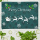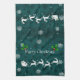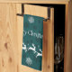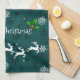 Añada un toque vacacional a su cocina con esta Verde azulada toalla de cocina de reno y gallo de Santa. El diseño de la toalla muestra el trineo de Santa, adornado con bayas huecas y tirado por sus renos contra un fondo verde azulado con copos de nieve cayendo. También hay artículos de regalo y de vacaciones disponibles con este diseño.
