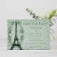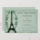 Anuncie su próximo día de bodas con una Torre Eiffel Verde, salve el anuncio de la fecha. El Save the Date presenta la Torre Eiffel adornada con un marco florido y elegante con un fondo de color gris y estampado postal. También hay material de boda adicional disponible con este diseño. ¿Necesita ayuda con la personalización? Por favor, contáctame y elaboraré la redacción y los detalles para adaptarlos a su satisfacción.