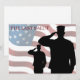 Honra a los caídos con el último saludo. En honor a nuestros caídos de las fuerzas armadas. Saludando a los soldados con la bandera estadounidense en el fondo.