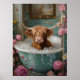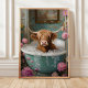 Sumérjase en las paredes con una encantadora impresión de arte con una vaca de montaña que disfruta de un relajante baño de burbujas en una bañera vintage. Rodeado de papel pintado de flores, flores alegres y burbujas de colores suaves, esta escena lúdica mezcla el encanto de una casa de campo con acogedoras y acogedoras vigas de madera. Perfecto para decoración de baño, casas de campo, o como regalo humorístico para los amantes de las vacas, esta impresión aporta sonrisas y estilo a cualquier espacio.