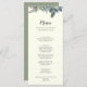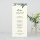 Esta carta de menú de boda de marfil es perfecta para una boda elegante. El diseño de otoño o invierno es sencillo y cuenta con una moderna vegetación acuática y hojas de oliva oscuras con un ambiente rústico de vacaciones.