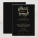 Las magníficas cartas boda de los Navidades cuentan con vegetación y hojas con falsas hojas de oro y bayas rojas y un marco dorado central sobre un fondo negro moderno. Estos menús también funcionan perfectamente para cualquier fiesta de vacaciones.