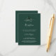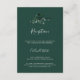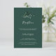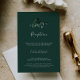 Esta tarjeta de recepción de boda verde esmeralda es perfecta para un boda boho. El diseño es elegante y rústico, con unas hojas de acuarela verde oscuro y un eucalipto con un toque bohemio moderno. Personalice esta tarjeta de gabinete de detalles con su información de recepción e incluya también la dirección de su sitio web boda.