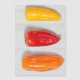 Pimientos de diferente color colocados en una tabla de corte gris Imagen © Angelika Stern