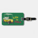 Puedes personalizar el nombre y la dirección en la parte posterior de esta etiqueta de equipaje "La vida es golf". Los colores son verde, amarillo y negro y el diseño está decorado con un carrito de golf negro y amarillo. Perfecto para los amantes del golf. Colóquelo en su bolso de golf cuando viaja. Puede cambiar el color de los fondos verdes y negros.