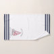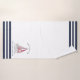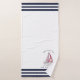 Crea accesorios únicos de baño monogramados para tu casa de lago. La vida es mejor en el lago diciendo está decorado con un ilustracion de velero con velas rojas y blancas y rayas azul marino y blanco. El texto y el ilustracion de un barco están situados en la esquina inferior derecha. Si quieres que esté en el centro, visita: https://www.zazzle.com/256686637310481401 Template facilita la personalización de esta toalla de baño con tu nombre o apellido.
