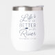 Celebra la vida en tu casa ribereña con este lindo vaso de vino personalizado que incluye la frase "la vida es mejor en el río" con letras azul marino acentuadas con un ancla y un remo. Personalizar con su apellido y/o año establecido debajo.