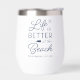 Celebra la vida en tu casa costera con este lindo vaso de vino personalizado que incluye la frase "la vida es mejor en la playa" con letras azul marino acentuadas con estilo náutico. Personalizar con su apellido y/o año establecido debajo.