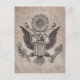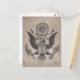 Este grabado en el escudo de armas estadounidense de aspecto vintage es perfecto para eventos patrióticos o personas. Celebrar el patrimonio y la grandeza de los Estados Unidos con este dibujo de tinta sobre un viejo papel basado en un grabado del Escudo de Armas de los Estados Unidos, parte del Gran Sello de los Estados Unidos. Este símbolo nacional estadounidense, con un águila calva estadounidense, sostiene trece flechas y una rama de olivo con trece hojas en sus garras y un escudo en su pecho con trece estrellas sobre su cabeza.