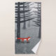 Un único zorro rojo salvaje se encuentra bajo los pinos, en un bosque oscuro. Por la naturaleza, la vida salvaje y los amantes de los animales.