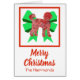 Silueta de perro de Labradoodle con un patrón abstracto de papel de Navidades rojos y arco verde. Los navidades y el mensaje de Año Nuevo que hay dentro pueden cambiarse a lo que quieras. Personaliza con el nombre debajo de la Feliz Navidad o simplemente añade feliz año nuevo.
