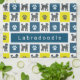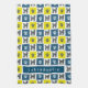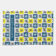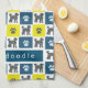 Patrón abstracto digital de la silueta de perro Labradoodle amarillo y azul de cuadrícula. Las huellas de la pata alternando con la silueta del perro hacen un patrón fresco. Puedes personalizar con el nombre de tu perro.