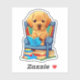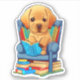 Labrador Puppy leyendo un pegatina de libros