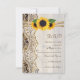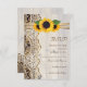 Elegante encaje blanco, cinta, girasoles y tarjeta de respuesta RSVP de boda de madera con encaje blanco en madera con dos cintas de satén cruzadas y girasoles. Texto en castaño. Hay que destacar que los encajes, la madera y los girasoles están todos "impresos" y que no tienen un verdadero tejido ni flores. Este elegante, sofisticado y romántico diseño de estilo rústico forma parte de un conjunto boda y es perfecto para una moda de campo o un boda occidental de otoño con una paleta de colores neutros.
