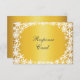 Copos de nieve blancos brillantes sobre un fondo dorado ilustrado acentúan esta respuesta coordinada para la invitación de boda Lace de Invierno en Oro.