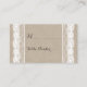 Esta es la tarjeta de lugar de coordinación para la línea de boda Lace in White en Burlap. También está disponible con encaje de marfil. Nota: el encaje es un ilustracion fotográfico.