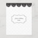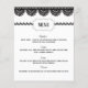 Crea un hermoso menú para celebrar tu día especial. Estas simples hojas de papel tienen un aspecto moderno y bonito. Este diseño presenta mis ilustraciones de encaje negro colocados sobre un fondo blanco. En la parte delantera puede personalizar los nombres de los cursos y las descripciones de los alimentos con su propio texto. En el reverso puede personalizar estos menús con el nombre de la novia y el novio y la fecha del boda.
