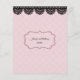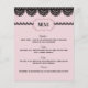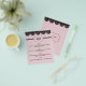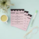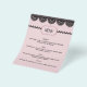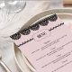 Crea un hermoso menú para celebrar tu día especial. Estas simples hojas de papel tienen un aspecto moderno y bonito. Este diseño presenta mis ilustraciones de encaje negro sobre un fondo rosa suave. En la parte delantera puede personalizar los nombres de los cursos y las descripciones de los alimentos con su propio texto. En el reverso puede personalizar estos menús con el nombre de la novia y el novio y la fecha del boda.