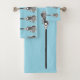 Un conjunto único de toallas deportivas lacrosse con un diseño de palo y bola de color azul claro.
