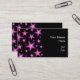 Diseño moderno con estrellas rosas y blancas "brillantes" sobre un fondo negro. Plantilla de tarjeta de visita con un diseño de personalizable para que pueda personalizar con su propio texto, imágenes e ideas. Tenga en cuenta que se trata de una imagen impresa creada con fotografías originales y técnicas digitales, que no brilla ni contiene chispas reales.
