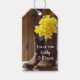 Gracias a sus invitados por asistir a su casual pero elegante Marzo, Abril o Mayo granja de primavera o cancha temática ducha de novias fiesta de granero o recepción matrimonial cuando usted asocia la encantadora Etiqueta de Favor de Boots Amarillos y Boots Cowboy a su favor partidario. Estas etiquetas rústicas personalizados de la moda con el favor de la fiesta incluyen una pintoresca fotografía floral de un par de botas de vaquero marrón llenas de flores de narciso amarillo y velo de novia blanco con fondo de granero marrón.