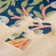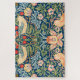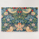 Este diseño se basa en un patrón creado por el diseñador británico William Morris (1834-1896), que es especialmente conocido y considerado por su asociación con el Movimiento de las Artes y la Artesanía. Strawberry Thief es uno de los diseños repetitivos más populares de William Morris para textiles. El patrón toma como tema a los pájaros tortuosos que Morris encontró robando fruta en el huerto de su casa rural, Kelmscott Manor, en Oxfordshire. El patrón se imprimió originalmente usando el método de descarga de índigo, una técnica antigua que había sido usada durante muchos siglos, principalmente en el este. Morris admiraba la profundidad de color y los detalles nítidos que producía. William Morris intentó imprimir por primera vez con este método en 1875, pero no fue hasta 1881, cuando se mudó a su fábrica en la abadía de Merton, cerca de Wimbledon, que finalmente lo consiguió. Todo el proceso hubiera tardado días en completarse y fue por esta razón que fue uno de los botones más caros de Morris & Co. Sin embargo, los clientes no se vieron desanimados por el costoso costo, y Strawberry Thief demostró ser uno de los patrones comercialmente más exitosos de Morris. La belleza y la elegancia del patrón se aprecian aún mucho hoy.