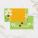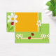 Sweet Flower adornado con una mariquita y un regalo en la parte de atrás con senderos de mariquita a lo largo de la tarjeta.