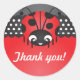 Este adorable y lindo fiesta de cumpleaños gracias pegatinas presenta una mariquita con una cara linda y cánticos. La mariquita está en el fondo de un punto de polka. Los pegatinas son rojos, negros y blancos. Perfecto para una niña de cualquier edad. Es bonito, moderno, moderno y de diseño.
