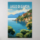 Diseño artístico vectorial del lago Garda. El lago de Garda, en el norte de Italia, es conocido por sus aguas cristalinas. En el extremo sur, la ciudad de Sirmione está dominada por la Rocca Scaligera, una fortaleza con vistas al puerto.