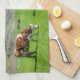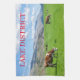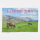 Una hermosa fotografía de vacas pastoreando en el Lake District de Inglaterra impresa en una toalla de té de recuerdo.