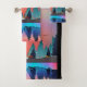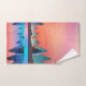 Toalla con un bonito diseño gráfico con un tranquilo lago de ciervos y altos pinos reflejados en el agua. Las estrellas se ciernen sobre sus cabezas.