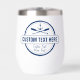 Estupendo vaso de vino o café con un diseño de logo vintage de un ancla náutica y 2 remaches cruzados. Personaliza con 3 líneas de texto personalizado - agrega tu nombre de lago/playa, nombre de familia, cabaña/casa de playa, nombre de barco, ciudad, ciudad, fecha, etc - lo que quieras. Perfecto para su próximo fiesta de playa o para los amantes del agua, el lago, el océano o el paseos en bote - es un gran regalo para el hogar también.