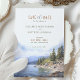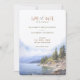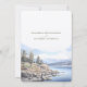 Pon el escenario para tu boda de un lago montañoso con nuestra carta de Save the Date de montaña rústica, que representa el paisaje sereno del lago Tahoe. La fachada presenta una tipografía elegante en tonos tierra de taupe, beige y marrón arenoso, complementada por un ilustracion acuático del lago prístino rodeado de rocas y pinos con un telón de fondo de montañas nevadas. La parte trasera muestra una continuación de esta escena tranquila, capturando la esencia de la naturaleza con tonos azul cielo, verde bosque y grises suaves. Perfecto para parejas que planeen un boda rústico y pintoresco al aire libre.