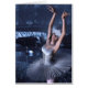 Ballerina como Odette la princesa cisne blanca del ballet clásico Lago Swan con fondo azul borroso del lago de los bosques y cisnes, ilustracion